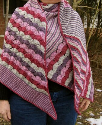 You can make this pattern exactly as you see it in the pictures, or you can easily adjust it. This triangular (cuneate) shawl is made to adjust. I have displayed it in the largest size, but you can make it as small as a neck wrap simply by stopping your knitting any time you like, and do the finishing work. It will still be the same shape but smaller.