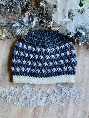 A celebration of textured crochet stitches, this quick and cozy hat is perfect for the chilly season. Three fun stitch variations join together with color play to make this hat fun both to crochet and to wear! Photo tutorials are included for the special stitches.