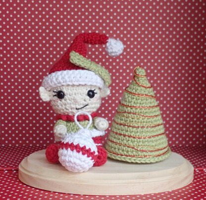 Materials: • Yarn: Any medium/worsted weight cotton yarn of your choice, Skin color, Green, Red, White & small amount of Pink I used: Dishie Cotton Yarn (Swan, Honeydew, Fiesta Red, White, & Blush) • Optional for tree decoration: Metallic Crochet thread in any color • 2.75mm hook (C) • Safety eyes (9mm) • Stitch marker • Stuffing • Tapestry needle