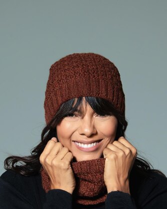 - 2 skeins total 800 yards, sufficient for both Hat + Cowl.
