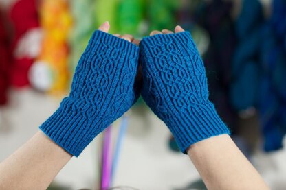 Use stockinette gauge to determine needle size needed to work the pattern. The pattern stretches to accommodate larger hands, but a loose gauge will make for a large, sloppy fitting mitt. Needles with very pointy tips and cabling without a cable needle will make these stitch patterns much more efficient to work!