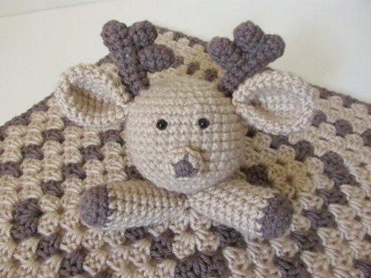 Finished Measurements Antlers: 2 inches tall, 1.5 inch across at widest point Ears: 1.75 inch from bottom to top Muzzle: 0.5 inch long Head: 3 inches tall, 9.25 inches around Legs: 2.5 inches long Blanket: Approx. 16 inches