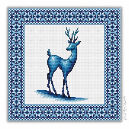 Ethnic Deer Ornament Counted Cross Stitch. Easy to Follow Embroidery Chart featuring a cute blue antler (elk) in a Scandinavian folk art hygge style. Great handmade gift idea for a cushion or winter craft room decor idea.\n\nSize: 147w x 147h stitches\nStitched on Aida 18ct: approx 21 x 21 cm (8 x 8 in)\nDMC Threads: 11 solid colours (no blends)\nUsed stitches: full cross stitch, half cross-stitch, backstitch\nSkill level: Easy / Beginner\nStitch time: 60-85h\n\nCross stitch pattern in PDF, Instant Digital Download includes: 1) cover page with preview; 2) instructions, symbols key and shopping list (DMC thread colour numbers and estimates, as well as fabric options); 3) two black and white charts, with and without backstitch; 4) two colour charts, with and without backstitch; 5) single page PDF for Pattern Keeper (available on request).\n\nPlease note: This pattern is for personal use only - not for commercial use. You can't make copies of our charts to distribute (either as PDF or printed versions) but you can definitely sell your finished cross stitch work.