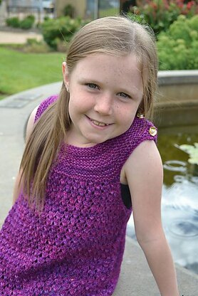 Delicately beautiful and charming Deinte features an easy to knit lace. A completely seamless, top-down knit perfect for layering in any season. This versatile knit has a length that is easily adjusted, allowing you to knit it as a dress that can grow with your girl into a tunic top.