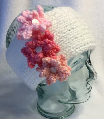 A great easy to knit gift idea! Wide headbands are very much in style now, and the "flower power" of 3 different shades of pink (or any color) makes it cute for a lady of any age! The wide headband is so warm to wear any time of year, or wear to keep your hair back on a very windy day. Add the easy to knit flowers, and you instantly have a great gift idea!