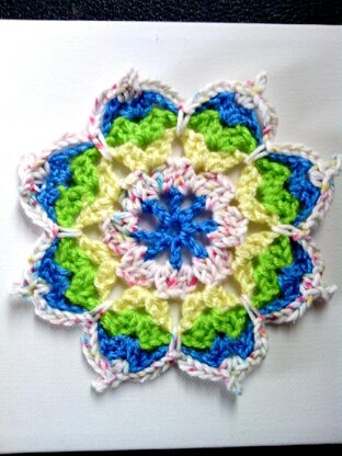 This trio of motifs is perfect for using the join as you go technique! There are three different motifs that have 8, 6, and 5 edges/points. The points are made of Picots, you can decide to use a ch 4 picot instead.