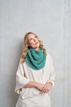 Inspired by the façade of the Venetian Church San Francesco Della Vigna is this cowl. The rows of eyelets add a sculptural effect to the cowl. Della Vigna Cowl ends like it began in a garter stitch band crowned by an I-cord. Fold the eyelet pattern in two to make it into a double collar. Wear it together with the Della Vigna Pullover or on its own to warm you.