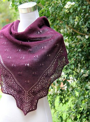 Size: After blocking, approx.: 46.5” wingspan, 26” depth (118 cm wingspan, 66 cm depth). The final measurements depend on chosen yarn, needles size, your personal gauge and also the amount of times the pattern is repeated.