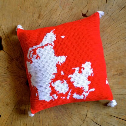 Easy to follow, both written and graphic crochet pattern to make this beautiful cushion with map and flag of Denmark.