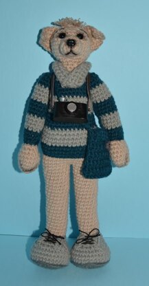 Dennis The Dog is the coolest dog in town. Just look at his expressive face! Dennis wears a stripey jumper with a shawl collar, shoes with real laces, a proper little sling bag, and a ready made camera complete his look. This pattern is 13 pages long and has lots of photos to help you along the way. This pattern is for those with some crochet toy experience.
