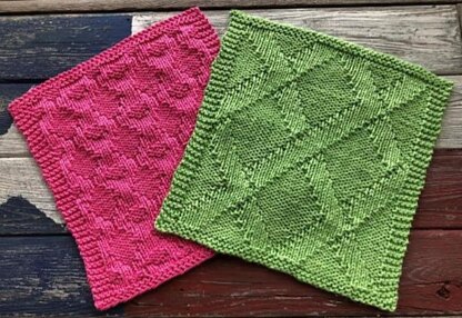 Denton and Stinnett Dishcloths are great for the Novice Knitter who is ready to expand their skills. A very nice small, take along project or while watching TV. These also make charming facecloths. There are two designs. The designs are very simple but intriguing, created by using only knit and purl stitches. Both are knitted flat. These instructions produce a tighter, more durable fabric. Both cloths have written and charted instructions. Denton and Stinnett are two towns in Texas!