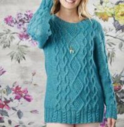This is a pattern for a diamond and twist cable jumper, originally published in Simply Knitting. It has a diamond cable at the centre and simple twist cables repeated at the sides, 2 x 2 rib. Photo Simply Knitting.