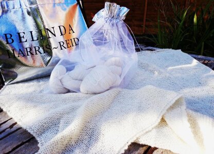 DIAMOND BABY is just masses of rows and rows of garter st; triangular, seamless and encompassing. Love to cuddle-up the baby or your shoulder in this super soft utterly simple yet elegant and practical wrap-me-up. Fasten with a shawl-pin to hold in place. Two choices of edging; a plain simple no-hole edge, or a lacy (dare I call it that?*!) edge with a simple hole to accent the border. Perhaps you would like to try this design in much chunkier yarn to make a sofa throw.