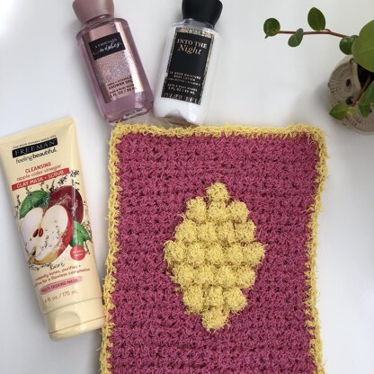 The Diamond Bobble Scrubby is a versatile stash buster! Choose scrubby or smooth cotton, make it in monochrome or a rainbow, and use it as a washcloth or dish scrubber!