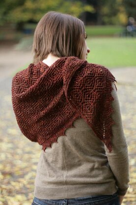 This elegant triangle shawl or scarf is started at the tip, with edging worked at the same time as the body.