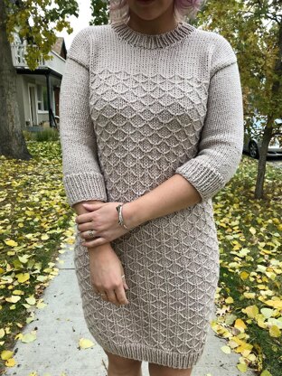 If you were looking for a super modern, hella classy and just all over gorgeous dress that’s knit, you’ve found it. The Diamond Knit Dress is a timeless classic shape that shows off those curves and has a unique diamond design. This dress is knit with bulky yarn which means it whips up fast.