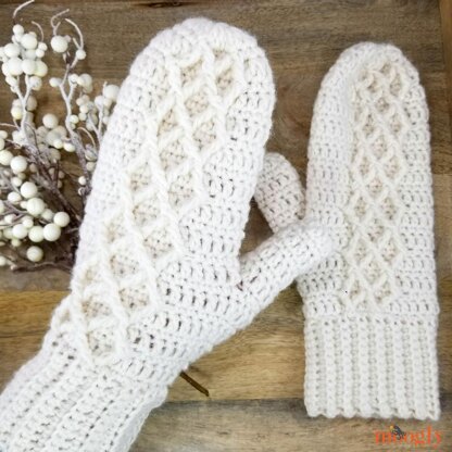 The Diamond Crochet Mittens are cozy, warm, and have just enough sparkle!