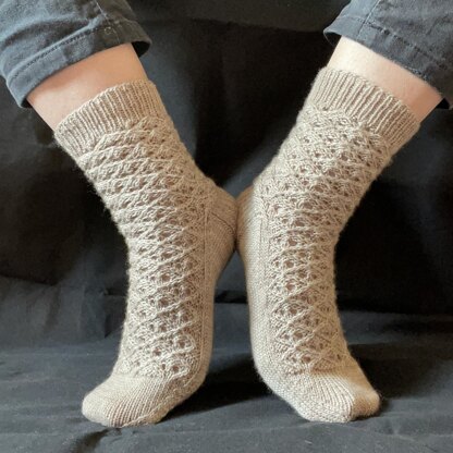 If you don’t wrap too tightly, the counterbalancing lace gives a decent stretch to these socks.