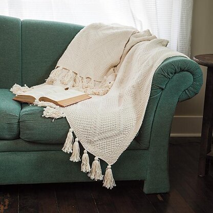 This classic blanket of textured diamonds is worked flat, all in one piece, from just knit and purl stitches. This sumptuously soft throw will make a beautiful addition to virtually any style of home decor.