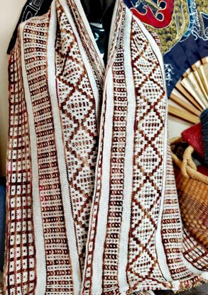 The wrap can easily be made wider by increasing the number of stockinette rows worked in the lighter color (and there is plenty of that yarn left over).