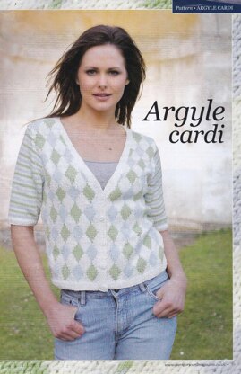This is a pattern for a Diamonds and stripes Cardigan, origianlly published in Yarn Forward. It has intarsia diamonds on the front and back, and striped sleeves. Photos Yarn Forward.