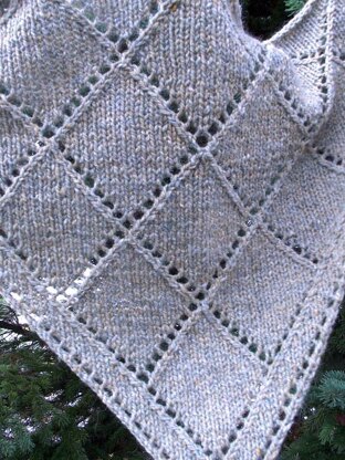 This is the second in a series that began with the Vee Neck Shawl. It is a fun to knit pattern and is easily adaptable to any yarn or size. I have chosen to knit both of my samples using just one ball each of Plymouth’s Kudo, and Peace Fleece’s Worsted. The one-ball size is big enough to fit over most people's shoulders and pin or tie. It would be very easy to start in with a second ball and just keep going until you got the size you want.