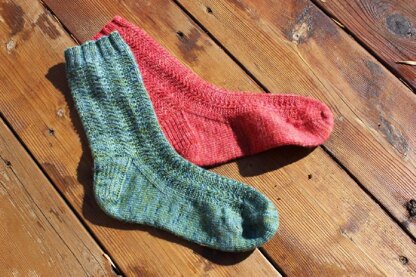 The colorful darts traveling down the cuff of this sock will end your hunt for the perfect pattern for a variegated sock yarn. A simple pattern with a complex effect, the yarn is carried (floated) across the right side of the fabric and knit into arrows, highlighting the color changes and subduing any unwanted pooling or flashing.