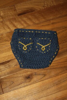 This little diaper cover makes an adorable photo prop for little ones! It has pockets with a design and belt loops to make it look like denim.