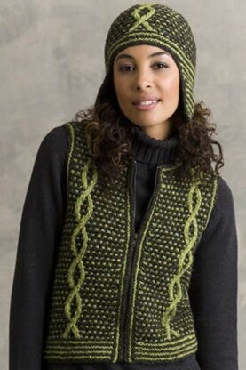 Dickens Cabled Vest & Helmet in Tahki Yarns Donegal Tweed