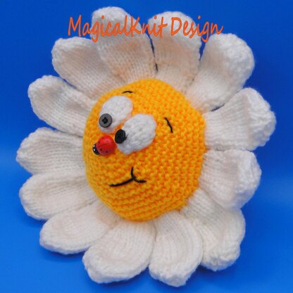 This is Didi the daisy knitted flat on straight Knitting needles, easy to follow pattern, with row by row written instructions and photo-tutorial.