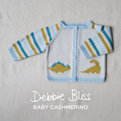 Download the PDF pattern for Dido Dinosaur Cardigan - Knitting Pattern for Babies in Debbie Bliss Baby Cashmerino & start knitting today!