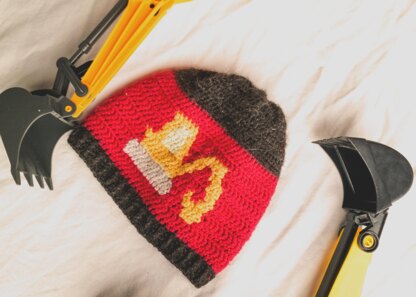 This hat is crocheted upwards from the cuff. For the digger pattern, a combination of Fair Isle and Intarsia is used. There are links to tutorials for: Fair Isle and Intarsia. And good news: The hat can be completed quickly, as you only need dc, hdc and post stitches.