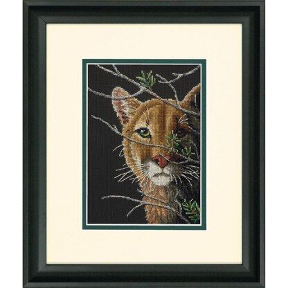 A stealth mountain lion is on full display in this counted cross stitch design from the Gold Petite collection by Dimensions. His gaze certainly seems to be captivated by something as he waits in the shadows. Finished size: 5" x 7". Kit contains presorted thread, 18 count black Aida, needle, and instructions.