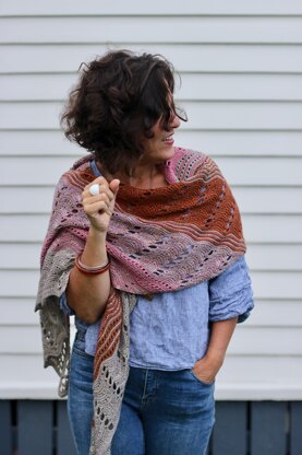 Wind her around your neck for a cosy pop of colour or drape her over your shoulders for an evening full of fun and dancing. Knitted from end to end, Dirty Lace is a long wrap worked on the bias, full of easy stitches that are oodles of fun to create.
