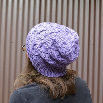 Work the slouchy version shown here or do one less pattern repeat and get a snug beanie. Add a fur pom pom for some extra fun.