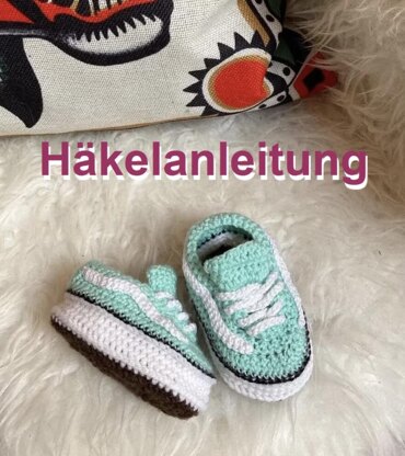 Tauche ein in die wunderbare Welt des Häkelns und zaubere dir deine eigenen Baby Vans “Old Skool” Schühchen. Meine umfassende Häkelanleitung ermöglicht es dir, diese bezaubernden Schuhe selbst herzustellen. Perfekt für passionierte Häkelfreunde, die Freude am Selbermachen haben. Häkelanleitung im PDF-Format: