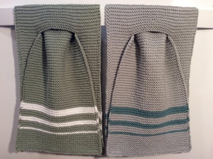Here’s a knitted towel that doesn’t need a button and won’t slip off the handle! It also has twice the drying space of the usual knitted towel.
