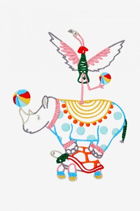 Download your free embroidery pattern and stitch this bright balancing act for yourself. This is the ideal way to add a colourful, handmade touch to tea towels, tote bags and t-shirts, or to create your own circus-themed home decorations.
