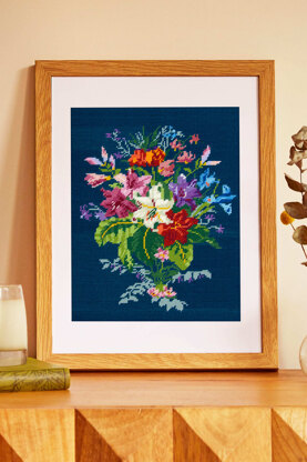 A 10-count Pénélope tapestry needlepoint canvas with a vintage bouquet design. Stitch this pre-printed canvas in your choice of tapestry wool or thread using half cross stitch.
