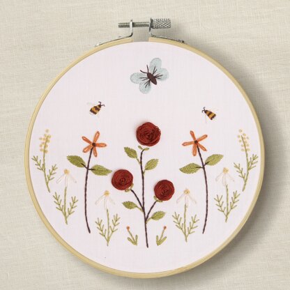 Using intermediate stitches, embroider the flowers that bees and butterflies love with this charming design from Aurora Menendez.