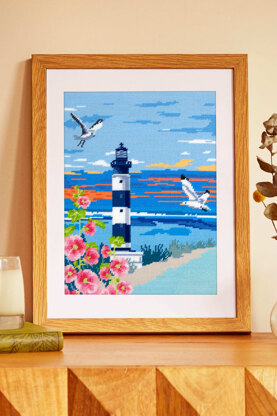 A 10-count Pénélope tapestry needlepoint canvas with a lighthouse design. Stitch this pre-printed canvas in your choice of tapestry wool or thread using half cross stitch.