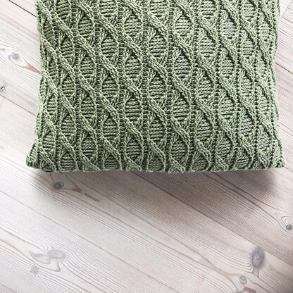 This pillow cover has a lovely textured pattern that resembles chains or dna-strings. The cables are challenging at first, but when you have tried it a few times, the pattern is easy to remember and fun to make.
