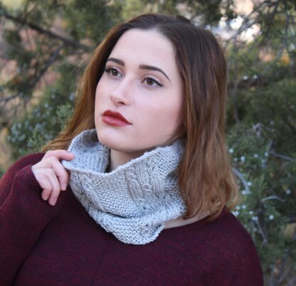 Doe Mesa has a lovely mix of a simple lace stitches and garter stitch. This is knit in the round, and knits up super-fast. The pattern is written out and charted. Small Cowl size shown.