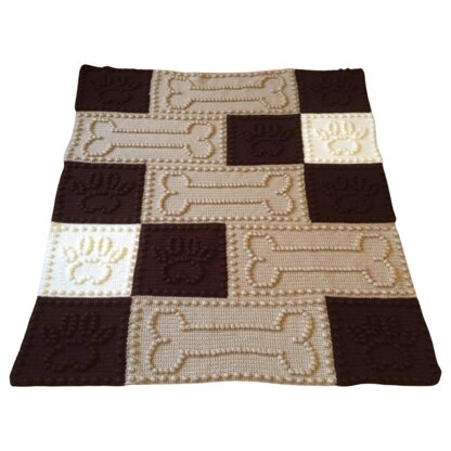 Blanket is made up with 15 motifs, (5 Bone and 10 Paw Print) each motif is written and also charted.