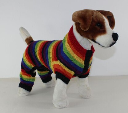 This is my Dog Rainbow Stripe onesie knitting pattern.This wonderful onesie is cut away in all the right doggy places and looks amazing on any size dog. The knitting pattern provides full instructions for 4 sizes: S (small dog e.g. Chiahuahua), M (medium dog e.g. Jack Russell) L (large dog e.g. Beagle or Boxer) and XL (extra large dog e.g. Dalmation or Labrador) and there are lots of photos to help you throughout. Its worked flat on 4 mm needles in any dk (8ply) yarn of your choice.You can buy this knitting pattern here.