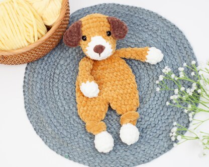 This dog snuggler will be the cuddliest friend for the little ones at home. It is a mix between a lovey and a stuffed animal.