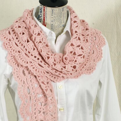 This delicate scarf is worked back and forth from one tip to the other with decreases and increases at the ends to create the crescent shape. The lacy border is worked along the entire length once the main body of the scarf is completed.
