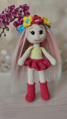 Materials : -YarnArt Jeans №05,51,67 - for the doll (160m/50g) -YarnArt Jeans № 33,- for the flowers(160m/50g) -Alize Cotton Gold № 110 (330 m/100 g)