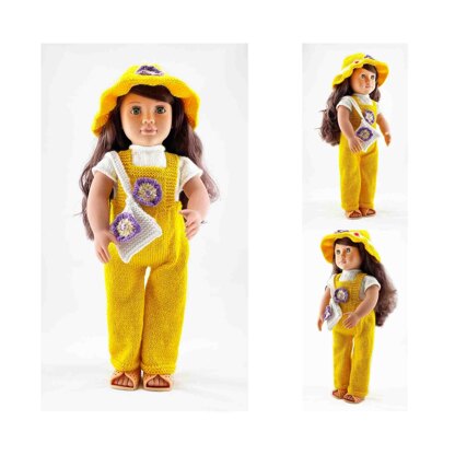 Dolls Clothes Knitting Pattern for 18 inch dolls such as Our Generation American Girl Maplelea Girl & similar dolls of the same proportions This is the 'Charlotte' outfit which includes t-shirt, dungarees, hat and shoulder bag. The patterns are knit flat and seamed and are very easy to follow with clear instructions and photos. All yarn amounts and step by step instructions are included in the patterns. ** SKILLS NEEDED TO COMPLETE ** HOW TO: Cast on Knit Purl Increase Decrease Cast off ** ITEMS NEEDED ** 2 x 3.25mm (US size 3) knitting needles buttons press fasteners stitch markers stitch holders double knitting yarn (8ply/light worsted) 1 x darning or tapestry needle