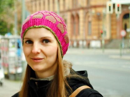 Treat yourself to some special yarn and knit this gorgeous little hat and mitts set, featuring slipped stitches and delicate cables. This hat has been inspired by the Neue Synagoge (‘New Synagogue’) in Berlin. It’s one of the most beautiful buildings I know with its graceful lines and the shimmering domes. So what lay nearer than to turn the pattern of the main dome into a cosy hat for winter?